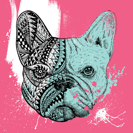 塗料の飛び散りと様式化されたフレンチ ブルドッグ手描き下ろしイラスト のイラスト素材 ベクタ Image