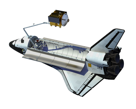 スペースシャトルを展開する通信衛星 3 D イラスト の写真素材 画像素材 Image